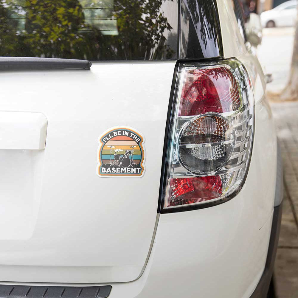 "I'll be in the basement" Drummer Vinyl Sticker Weatherproof Decal