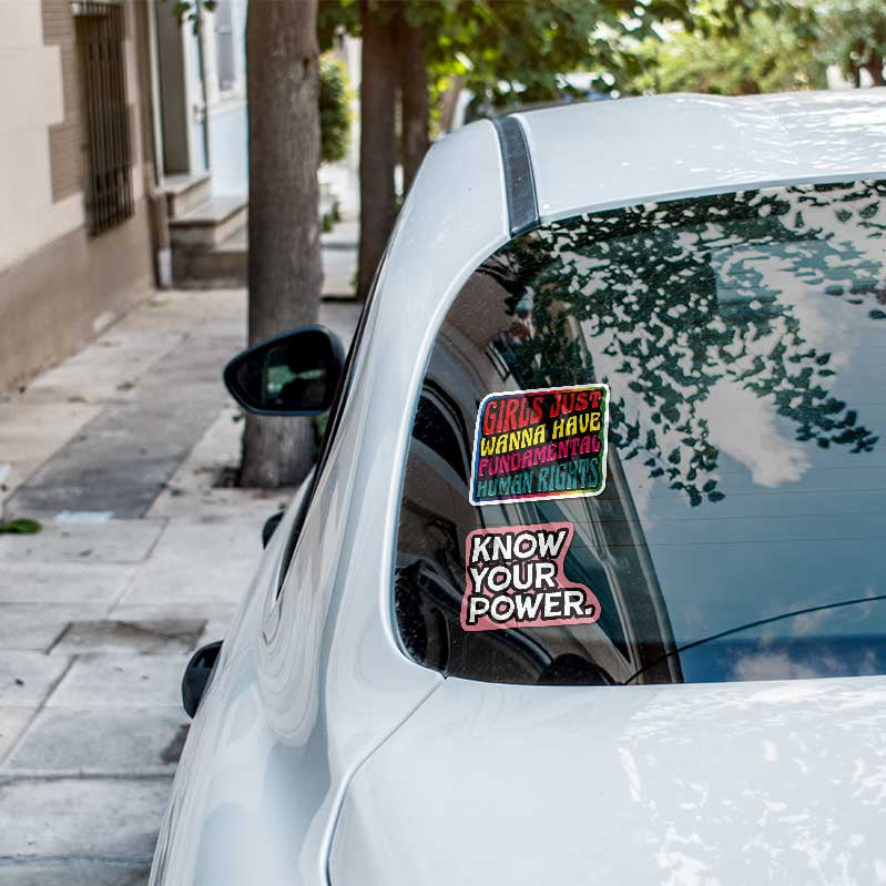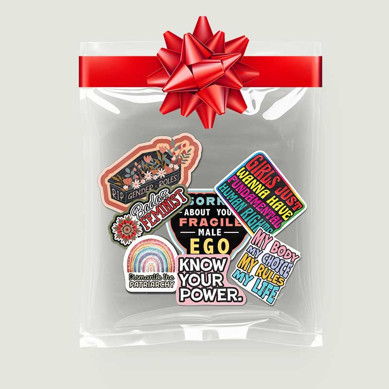 Join the cause and display your dedication to feminism with the Women's Rights 7-Sticker Pack! These top-notch stickers are ideal for conveying your values and connecting with others who share your views. Share them with your progressive peers and spread the powerful message of unity and solidarity. Don't miss out on our sought-after designs - grab them all in one convenient pack!